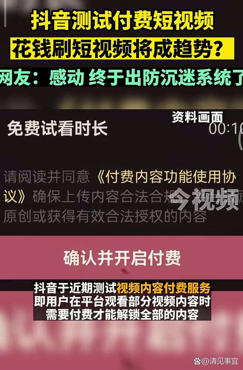 抖音最近开始尝试对视频内容收费,不少网友在小红书和微博上热议此事,指出在抖音上看到的部分视频需要付费才能完全观看。在微博上,关于“抖音试行付费视频”的话题迅速走红,阅读量已超过2.1亿次。大家议论纷纷,很多人惊讶地意识到,或许免费看视频的时代将要画上句号。